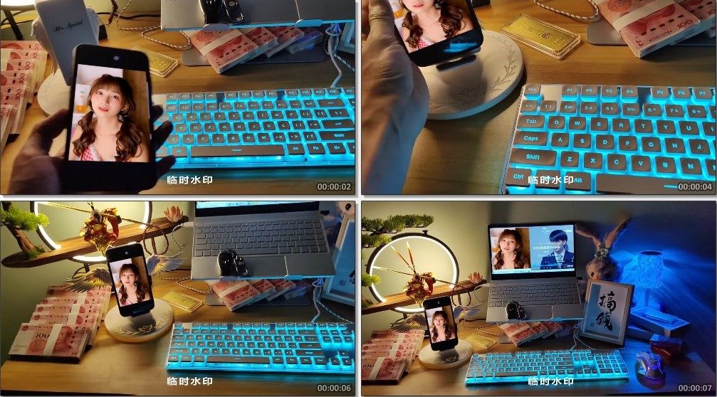 电脑桌摆拍现金手机电脑换图自定义AE模板编号2367